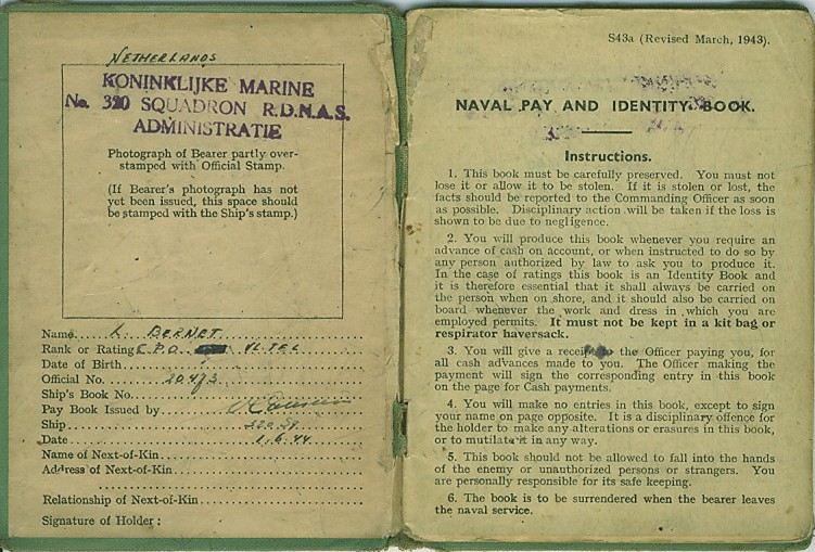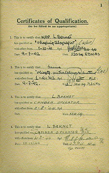 Hij maakte vervolgens 24 operationele vluchten bij "A" en "B" Flied van het 320Sqn. Deze vluchten waren vooral gericht op de Nederlandse - en Franse kust. Op 15 Maart 1943 werd hij overgeplaatst naar No.2 Group Bomber Command wat was gestationeerd op R.A.F. Station methwold en 15 dagen later naar R.A.F. Station Attlebridge. Vervolgens maakte Bernet 71 operationele vluchten met Mitchells. Druk svp op de kleine logboekfoto voor een kleine impressie. In 1947 ging Sgt Bernet naar Nederlands-Indië en vloog als Cine Camera Operator in Catalina's Zijn laatste vlucht maakte hij op 13 april 1948. De bergen van Oost-Java werden toen in beeld gebracht.