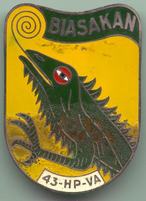 Metaal mouwschild van het 43e Hulpverbandplaatsafdeling. BIASAKAN betekend 'Gewoon toch!