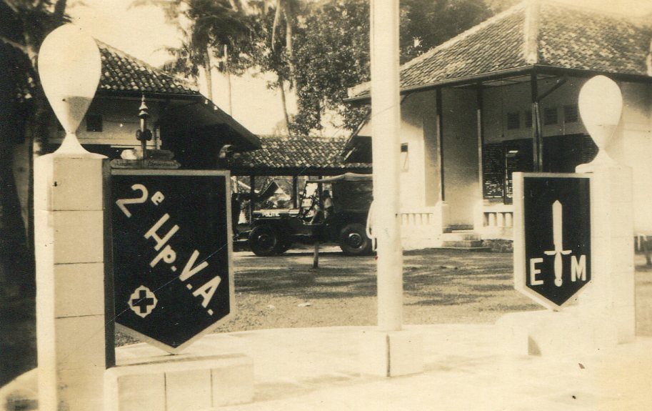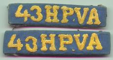 Emblemen voor over de epauletten van het 43e Hulpverbandplaatsafdeling. Locale Indische of persoonlijke aanmaak.